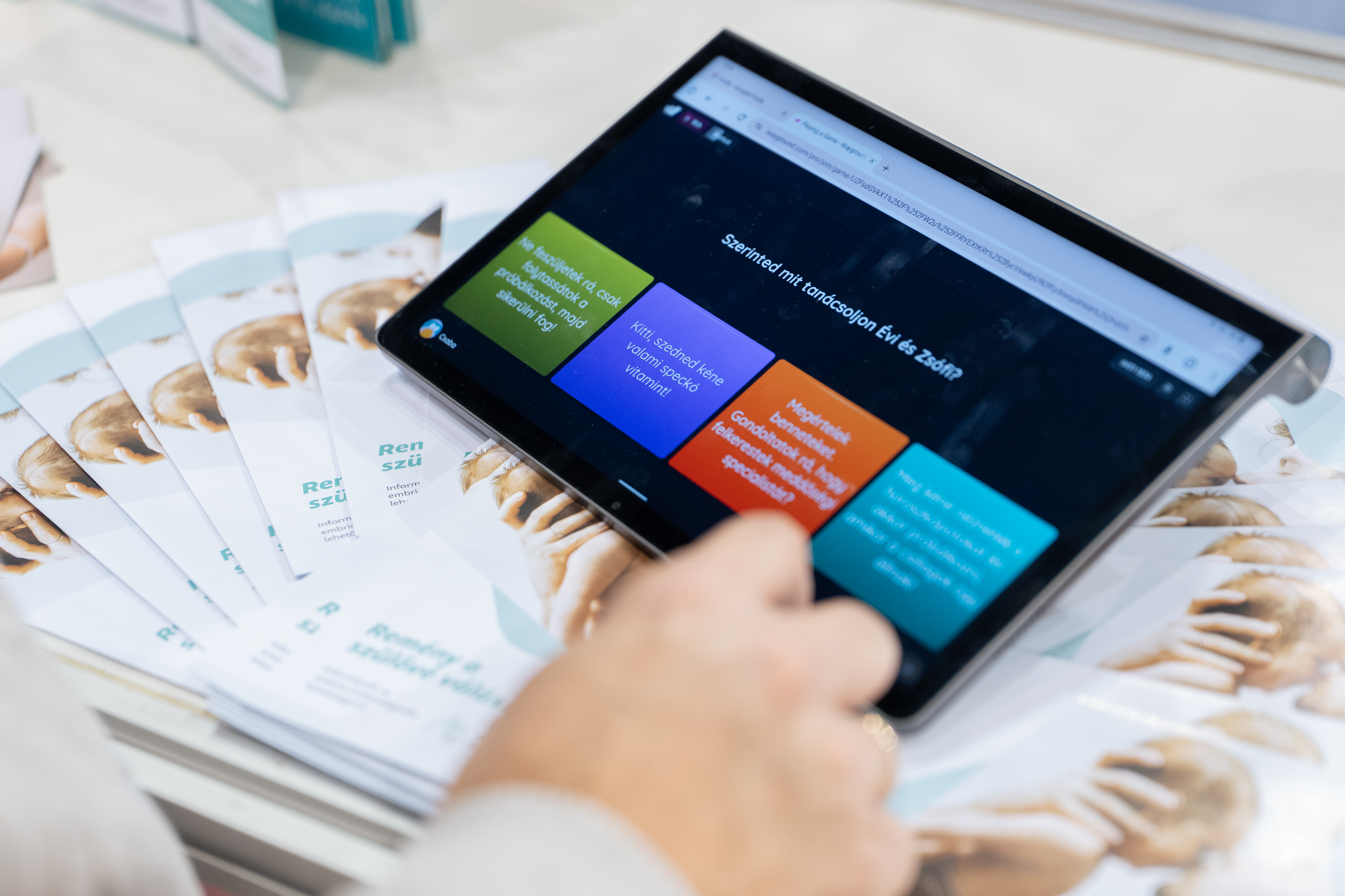 A HRI standján az érdeklődők - korábbi ígéretünkhöz híven - megtekinthették legújabb animációs videóinkat, melyek érthető és szemléletes módon mutatják be a termékenységgel kapcsolatos legfontosabb tényezőket. Aki lemaradt, hamarosan visszanézheti a legújabb epizódokat a YouTube-on is! Az érdeklődök megkapták legújabb ismeretterjesztő kiadványainkat, kipróbálhatták kreatív fotósarkunkat, felmérhették termékenységi tudásukat játékos kvízünk segítségével.